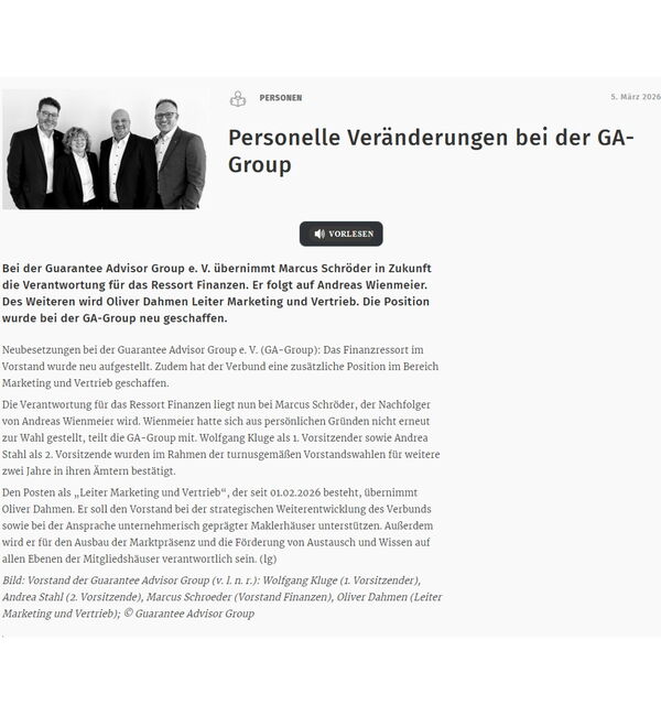 Hier finden Sie aktuelle News, Termine, Presseartikel und die neuesten Ausgaben unseres Guarantee-Journals.